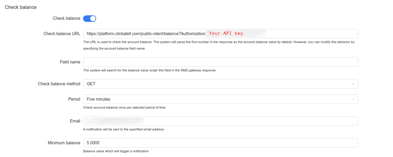 First, you will need to get an API key on your Clickatell account. For detailed instructions please refer to the official documentation: