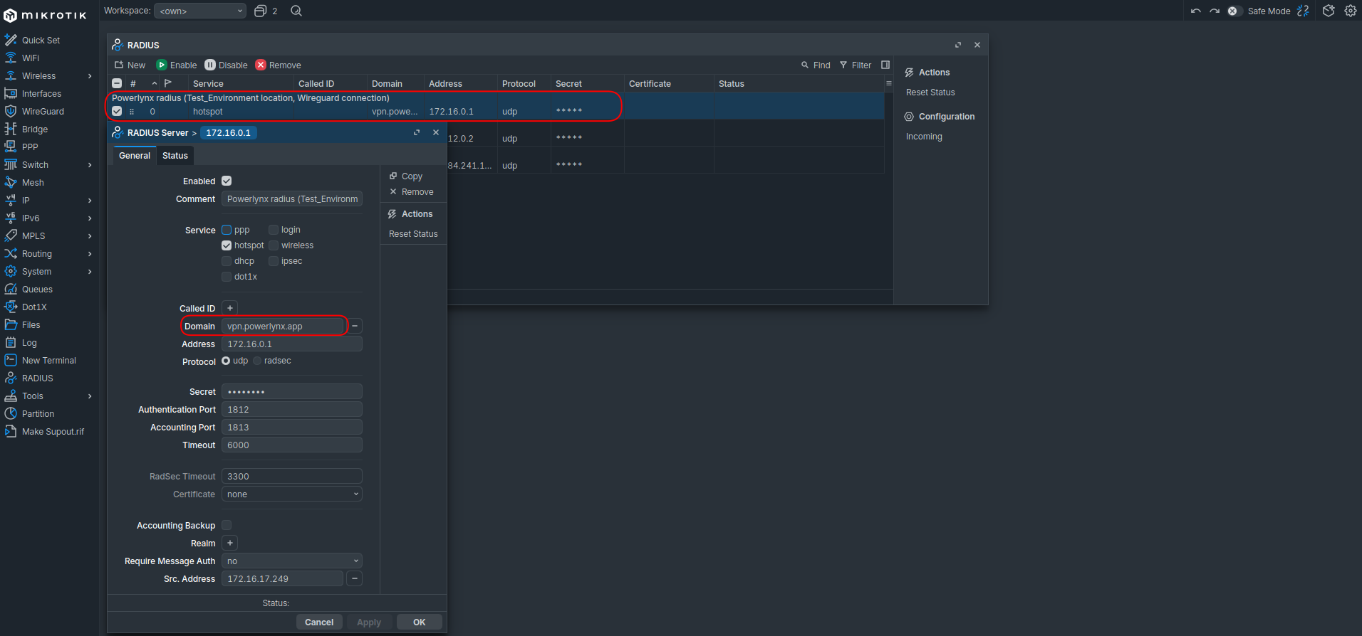 /radius. Edit the profile created for WireGuard and set the Domain field tovpn.powerlynx.app.